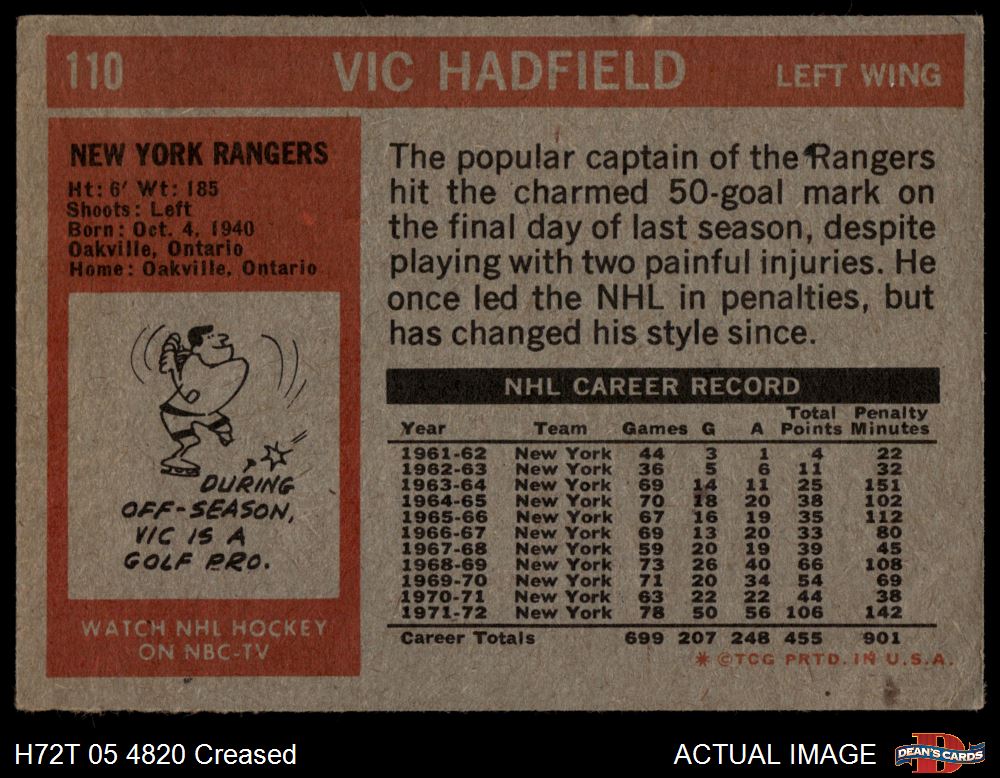 1972 Topps #110 Vic Hadfield Front Thumbnail