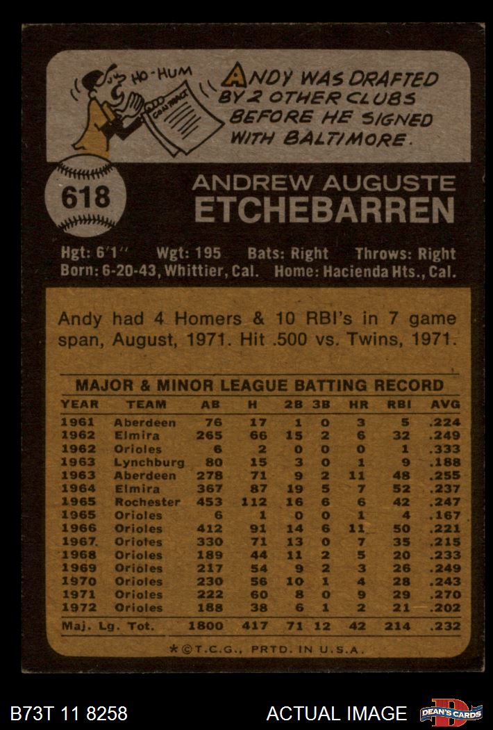 1973 Topps #618 Andy Etchebarren 4 - VG/EX