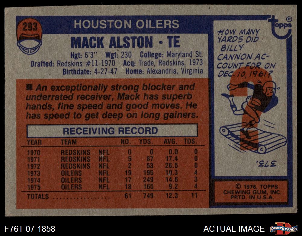 1976 Topps #293 Mack Alston