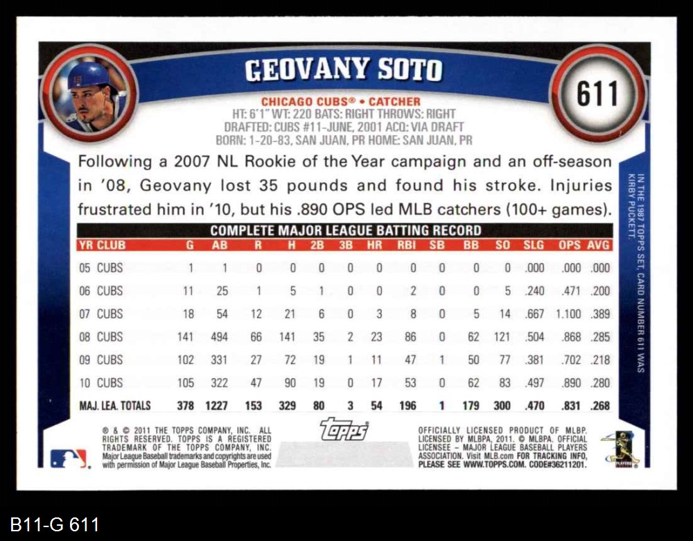 2011 Topps #611 Geovany Soto 8 - NM/MT