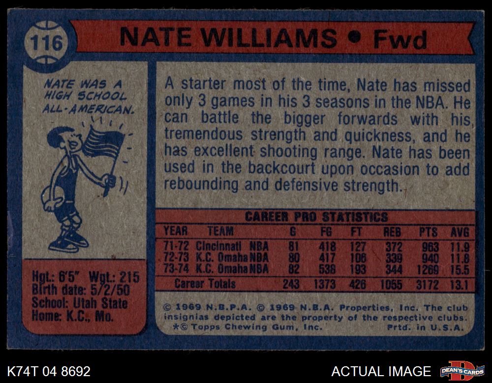 1974 Topps #116 Nate Williams 3.5 - VG+