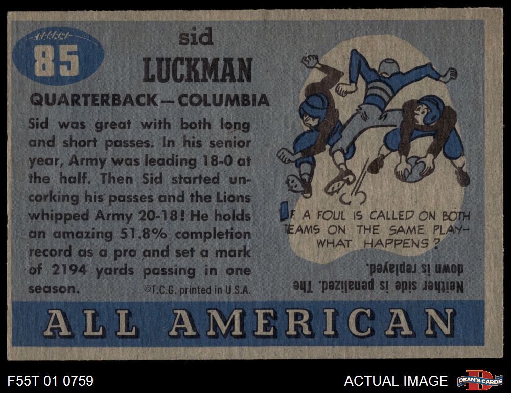1955 Topps #85 Sid Luckman 4 - VG/EX