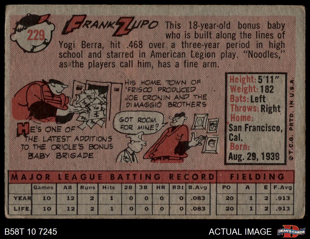 1958 Topps #229 Frank Zupo 2 - GOOD