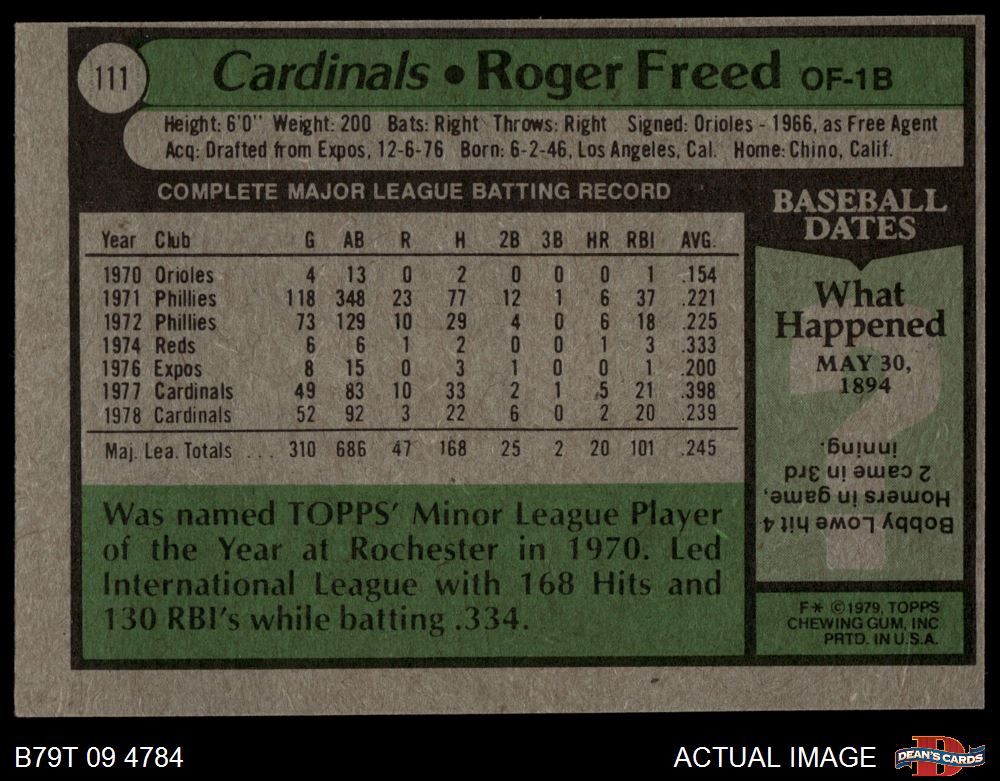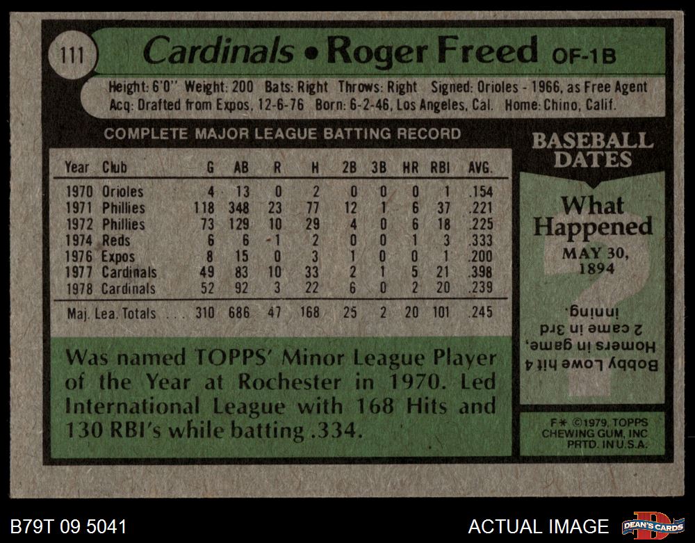 1979 Topps #111 Roger Freed