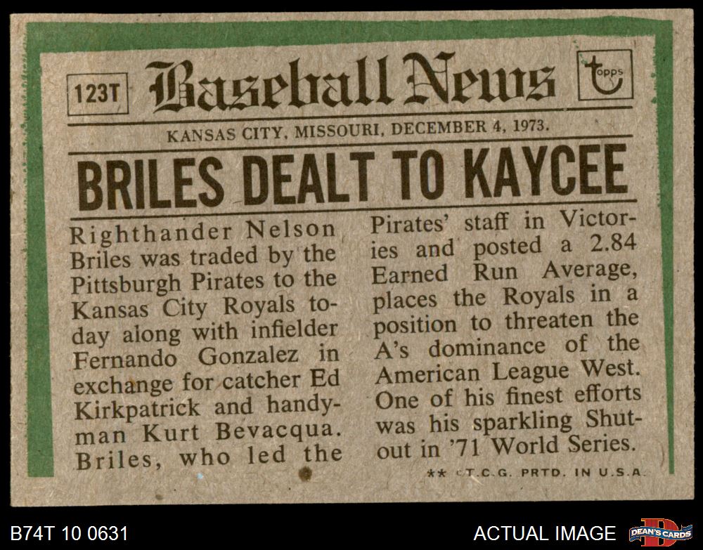 1974 Topps #123 T - Nelson Briles Traded 6 - EX/MT
