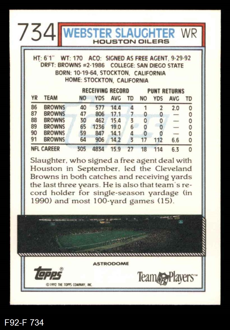 1992 Topps Football Cards (2,235 available)1992 Topps Oilers (130 available)