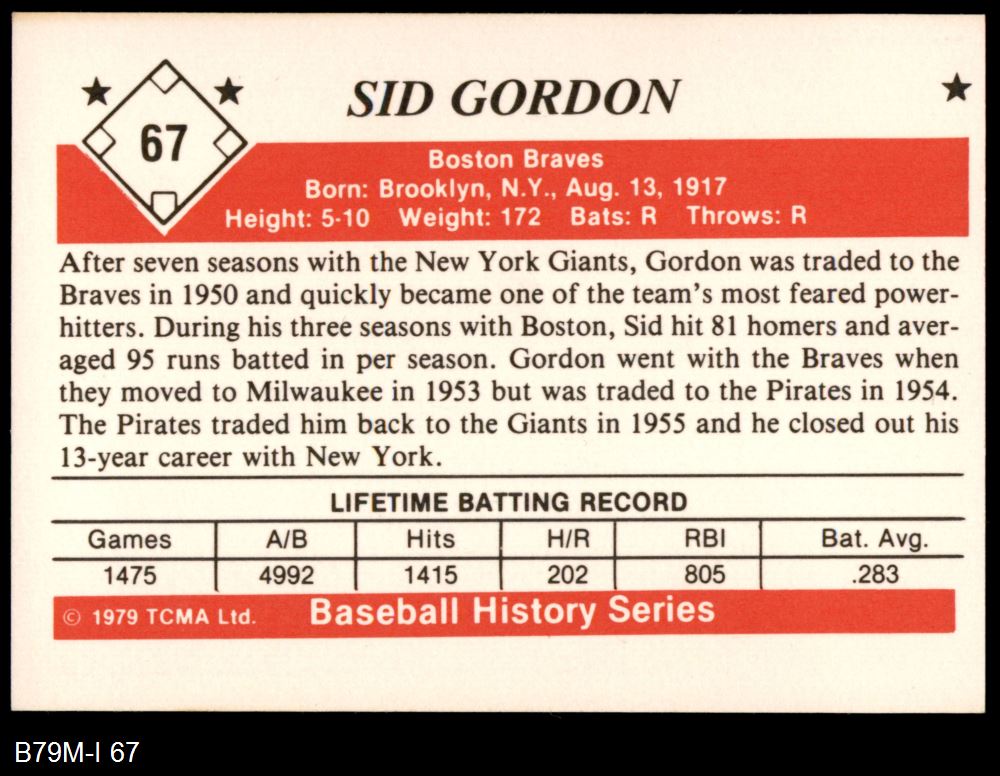 1979 TCMA The 1950's #67 Sid Gordon