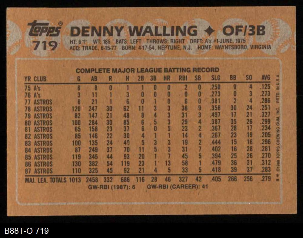 1988 Topps #719 Denny Walling 8 - NM/MT