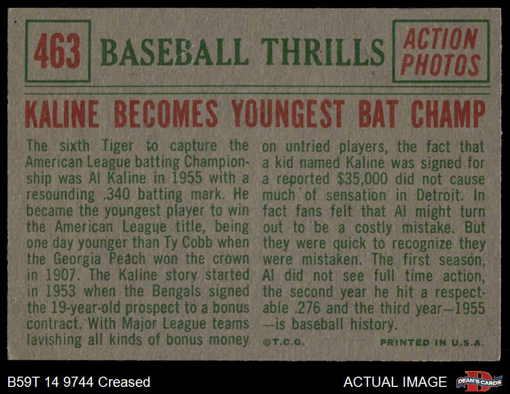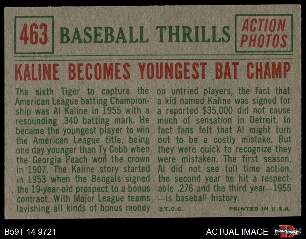 1959 Topps #463 - Al Kaline Becomes Youngest Bat Champ 3 - VG