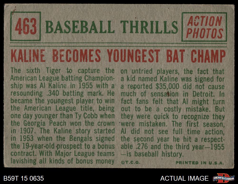 1959 Topps #463 - Al Kaline Becomes Youngest Bat Champ 3.5 - VG+