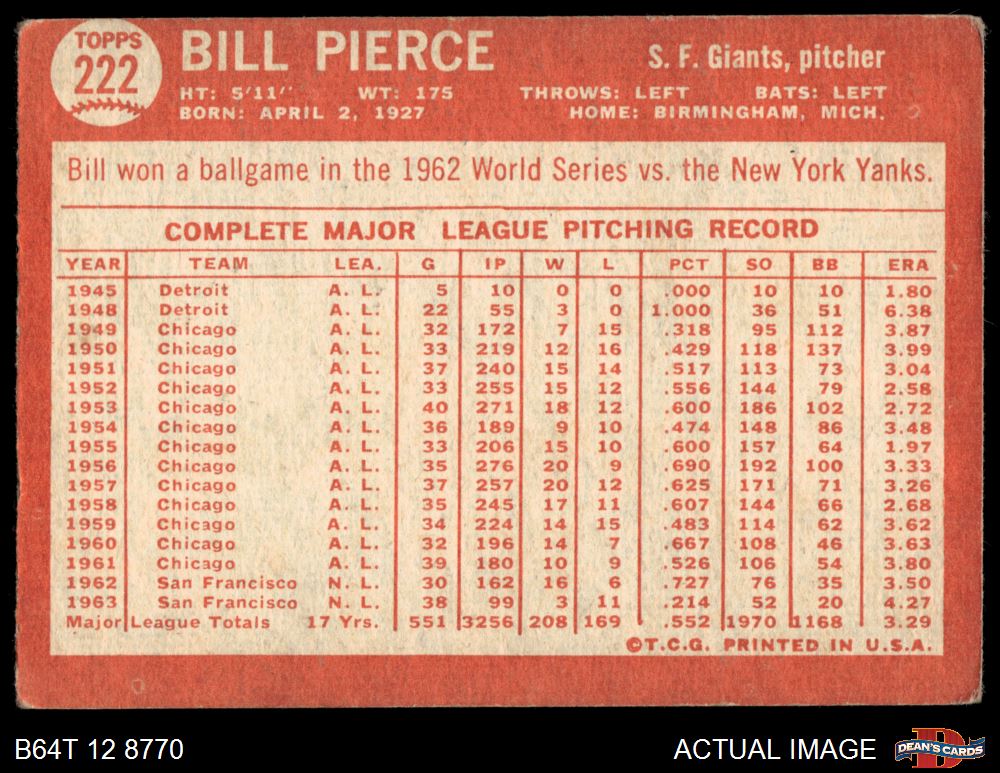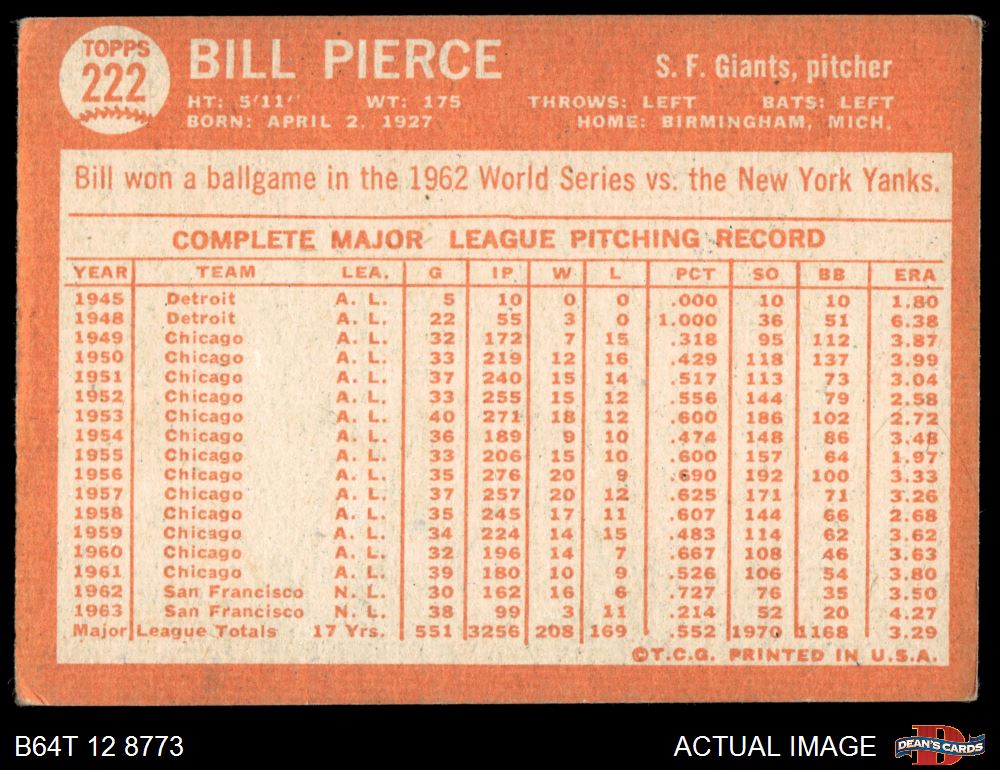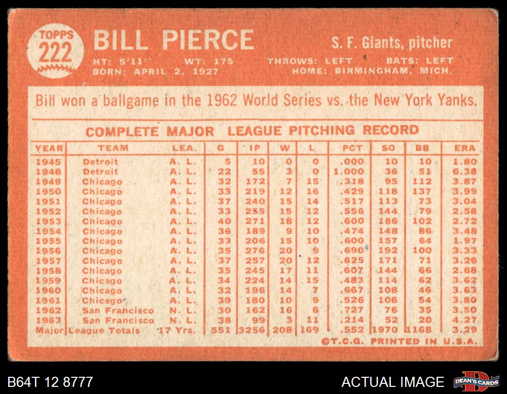 1964 Topps #222 Bill Pierce 1.5 - FAIR