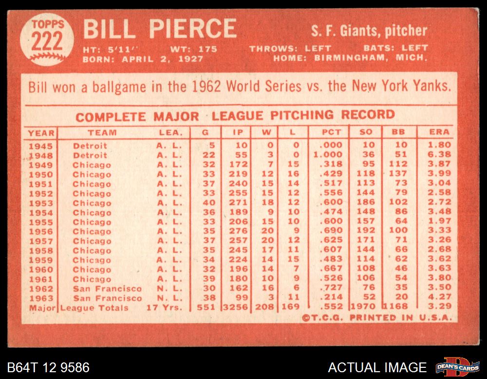 1964 Topps #222 Bill Pierce 4 - VG/EX