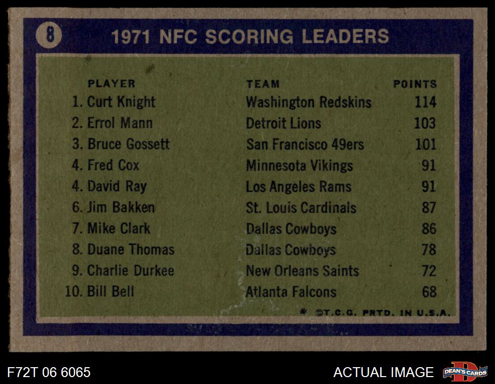 1972 Topps #8 - Curt Knight / Errol Mann / Bruce Gossett NFC Scoring Leaders 4 - VG/EX