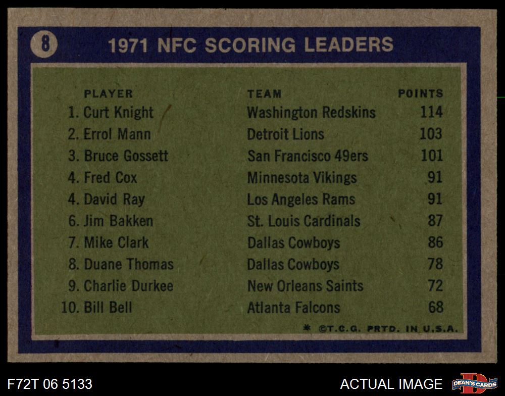 1972 Topps #8 - Curt Knight / Errol Mann / Bruce Gossett NFC Scoring Leaders 7 - NM