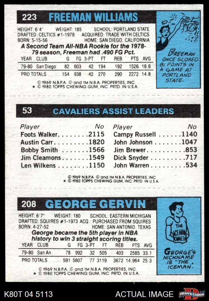 1980 Topps - George Gervin / Foots Walker / Freeman Williams 208 / 53 / 223 7 - NM