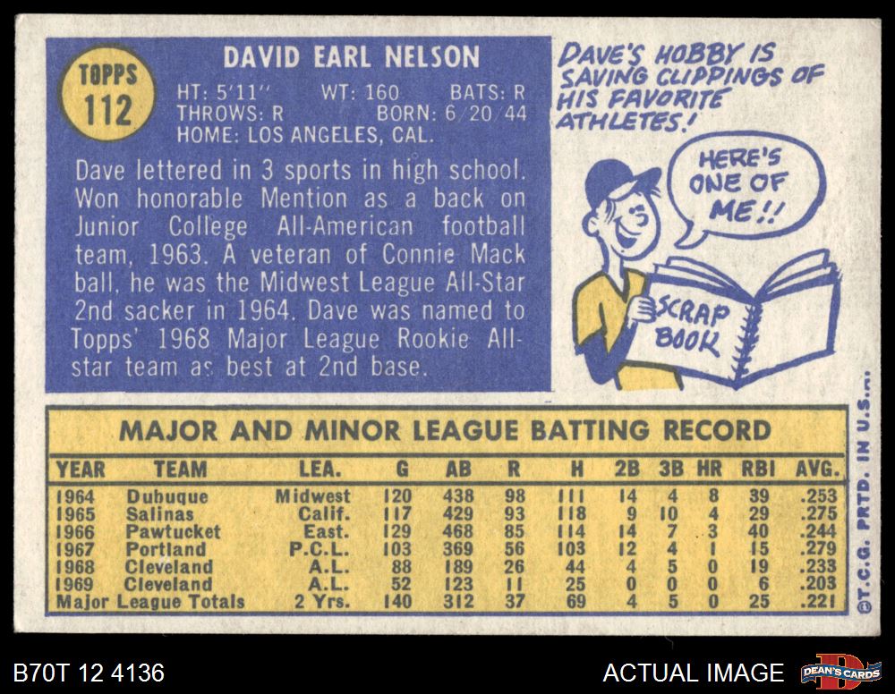 1970 Topps #112 Dave Nelson