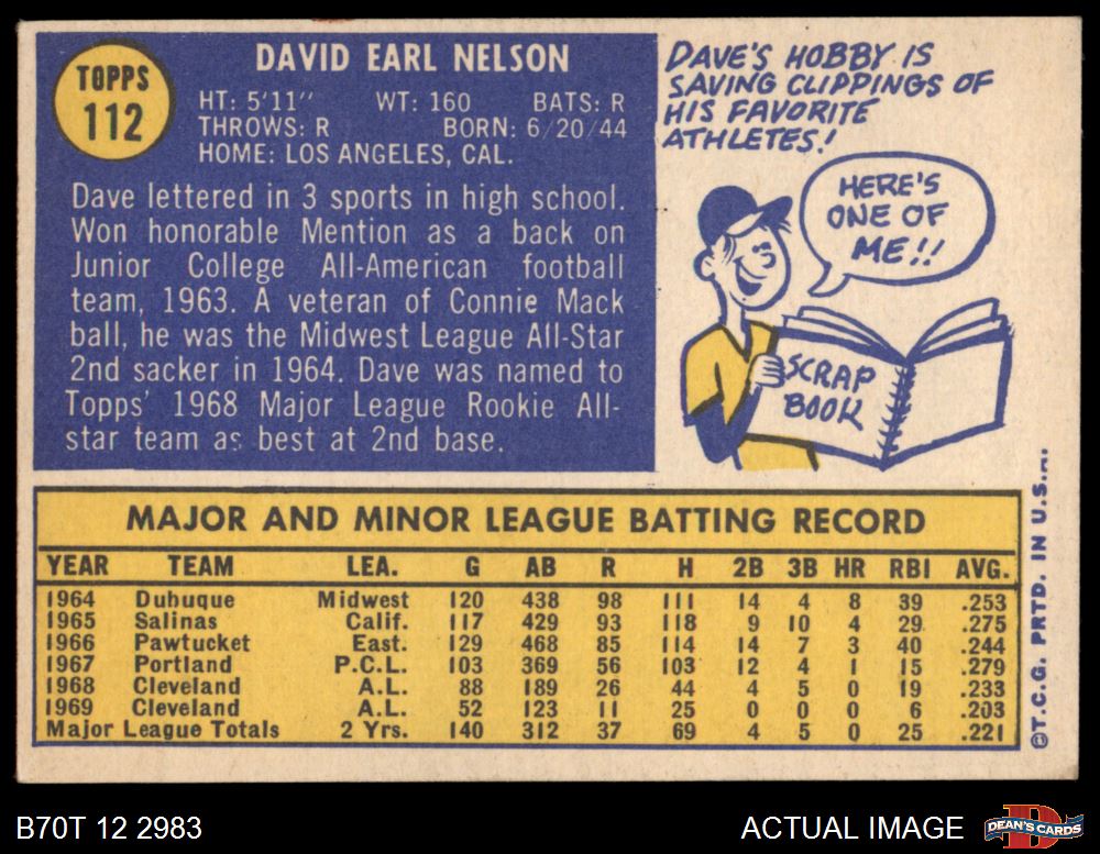 1970 Topps #112 Dave Nelson 5 - EX