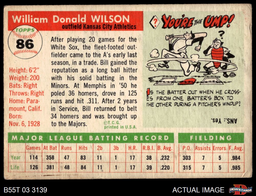 1955 Topps #86 Bill Wilson 2 - GOOD