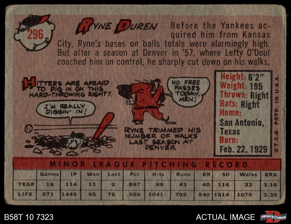 1958 Topps #296 Ryne Duren 1 - POOR