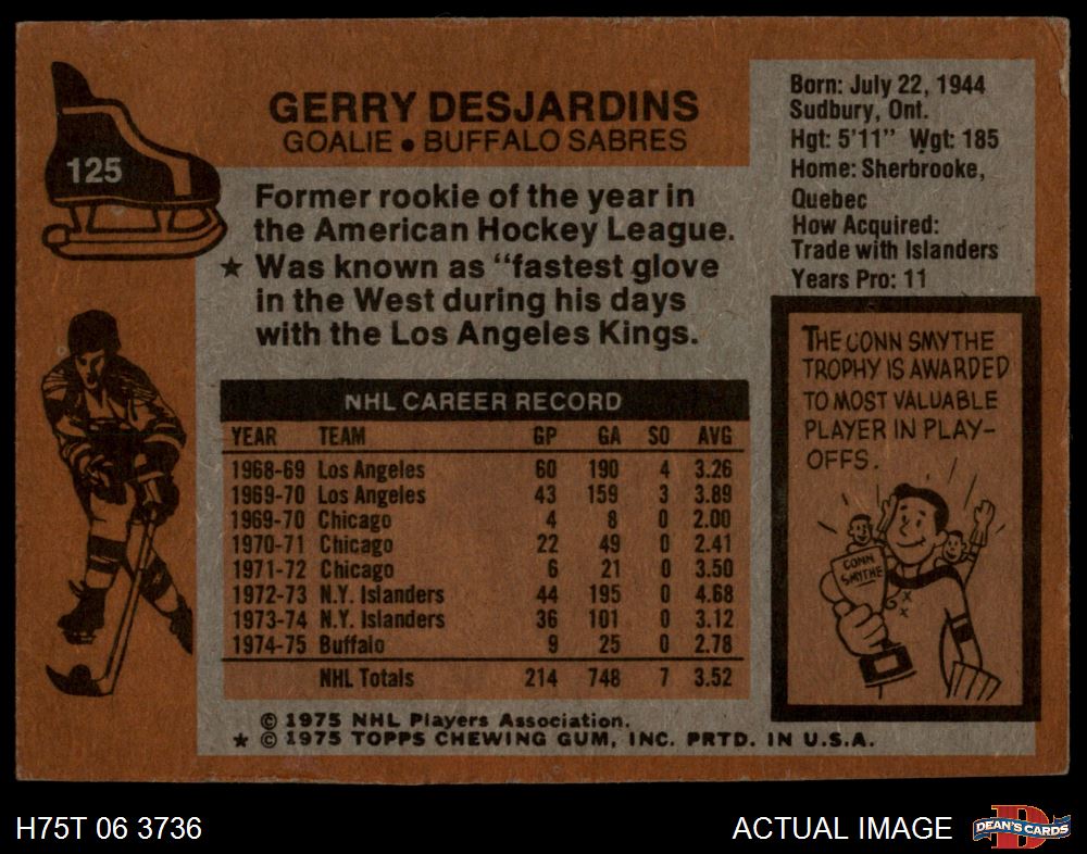 1975 Topps #125 Gerry Desjardins 5.5 - EX+