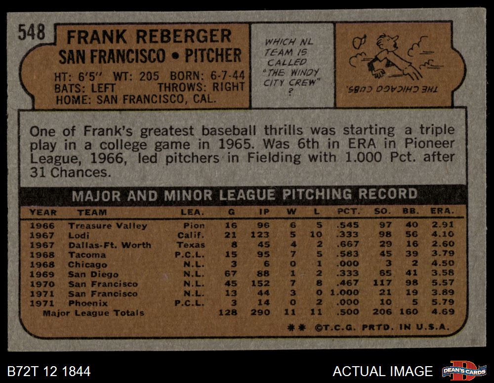 1972 Topps #548 Frank Reberger 5 - EX