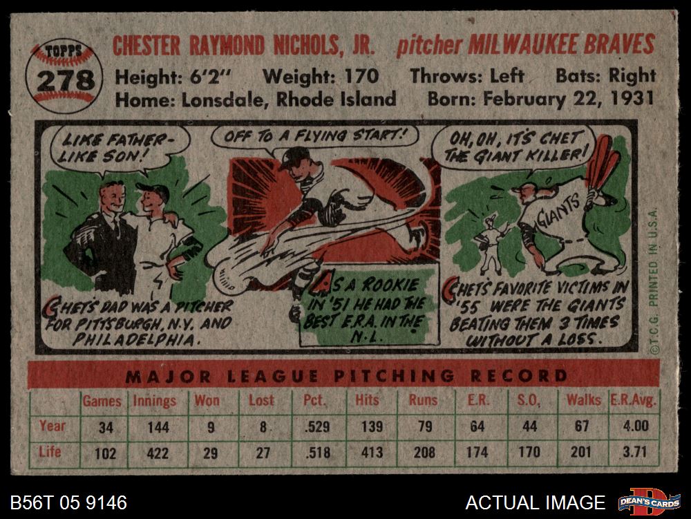 1956 Topps #278 Chet Nichols 3 - VG
