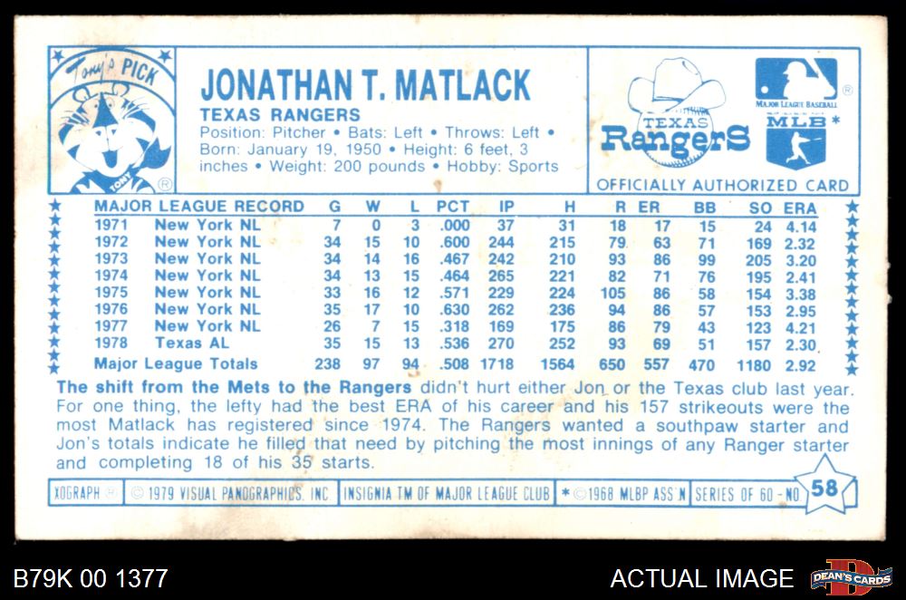 1979 Kellogg's #58 Jon Matlack 6 - EX/MT