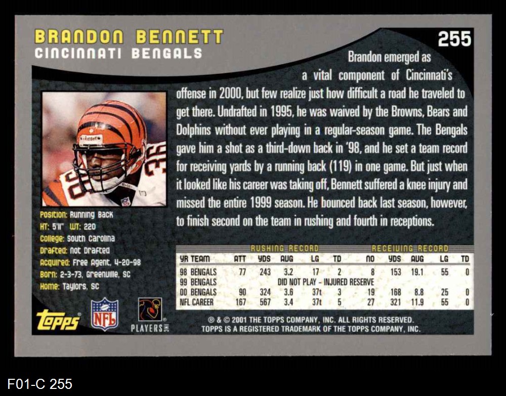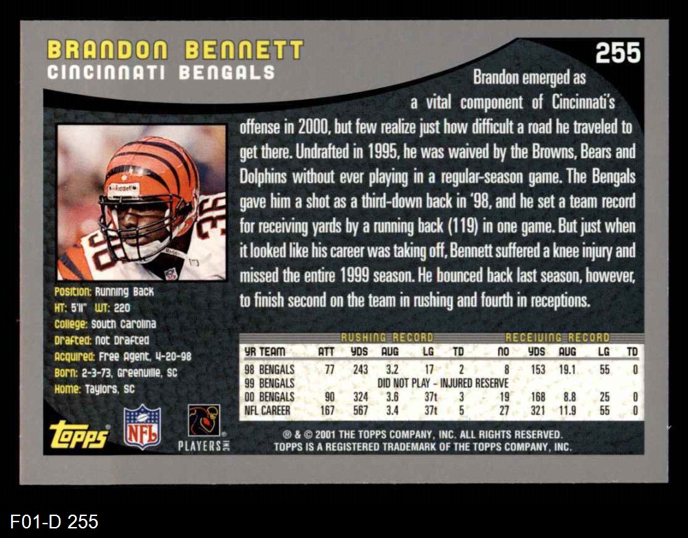 2001 Topps Football Cards (775 available)2001 Topps Bengals (33 available)