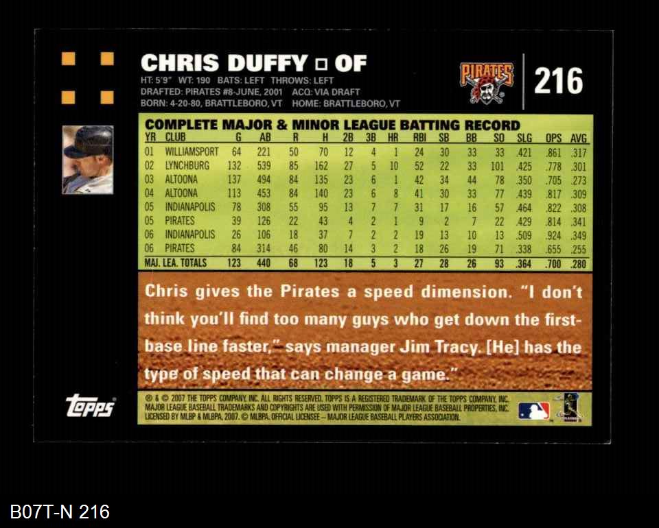 2007 Topps #216 Chris Duffy 8 - NM/MT
