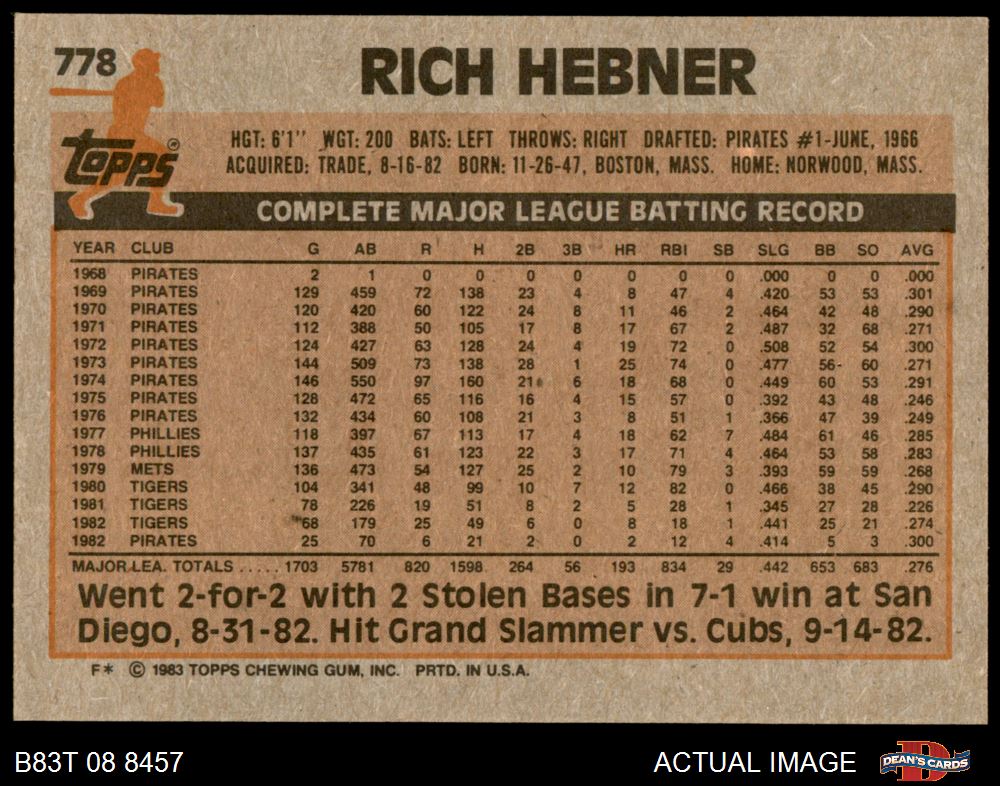 1983 Topps Baseball Cards (8,403 available)1983 Topps Pirates (263 available)