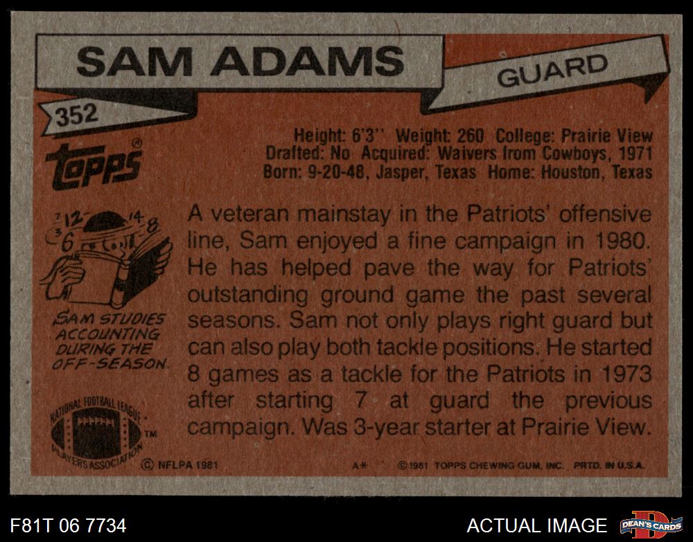 1981 Topps #352 Sam Adams 6.5 - EX/MT+