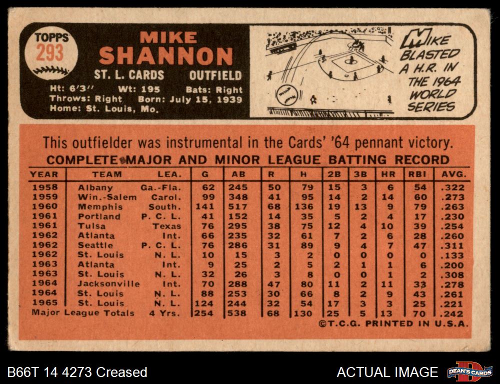 1966 Topps #293 Mike Shannon Front Thumbnail