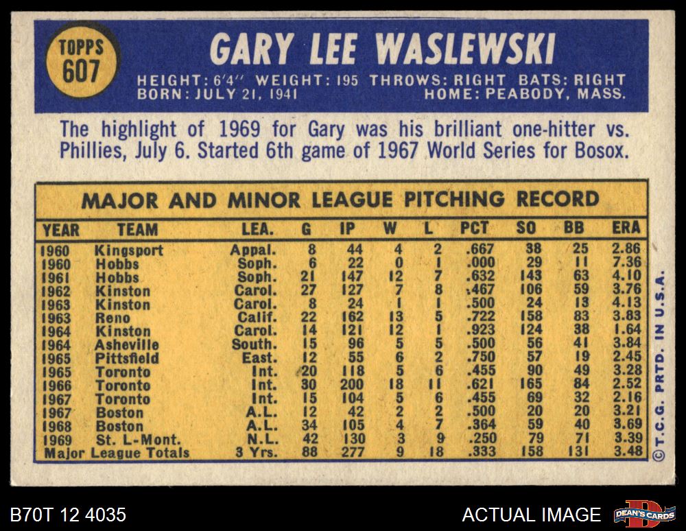 1970 Topps #607 Gary Waslewski 6 - EX/MT