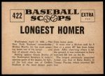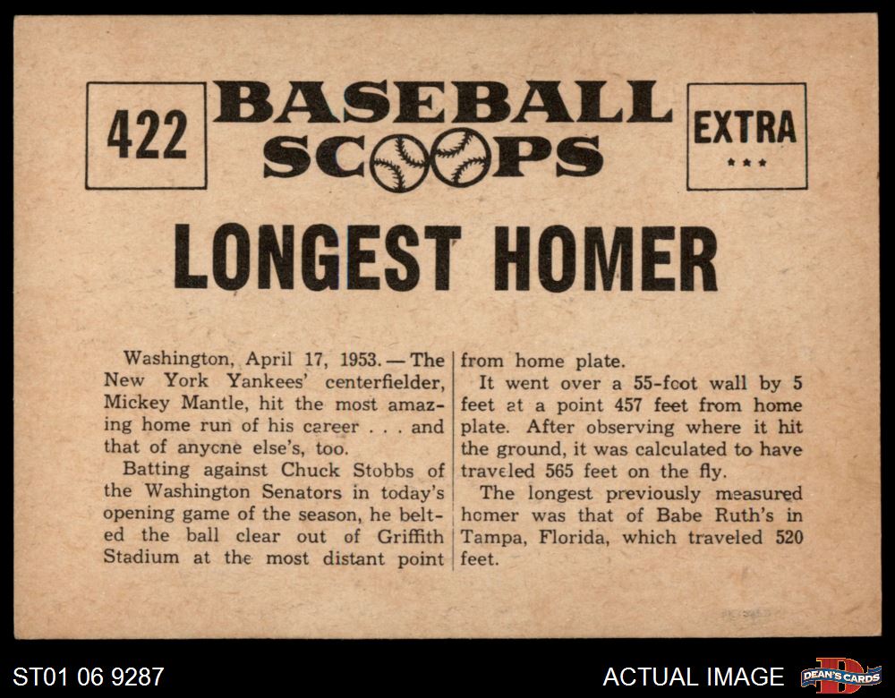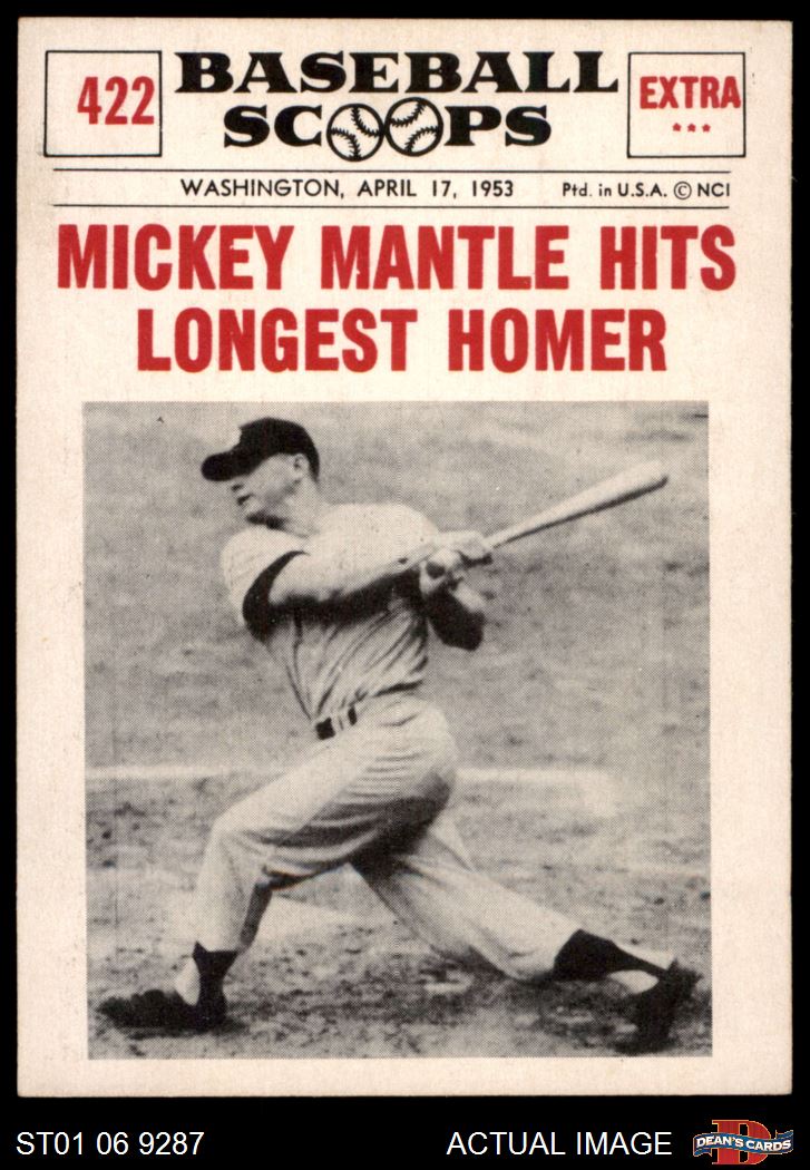 1961 Nu-Card Scoops #422 - Mickey Mantle Hits Longest Homer 7 - NM