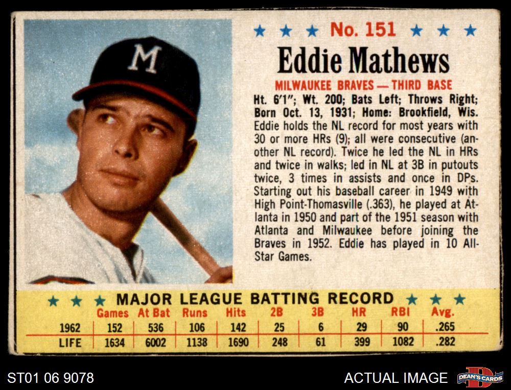 1963 Post Cereal #151 Eddie Mathews 4 - VG/EX