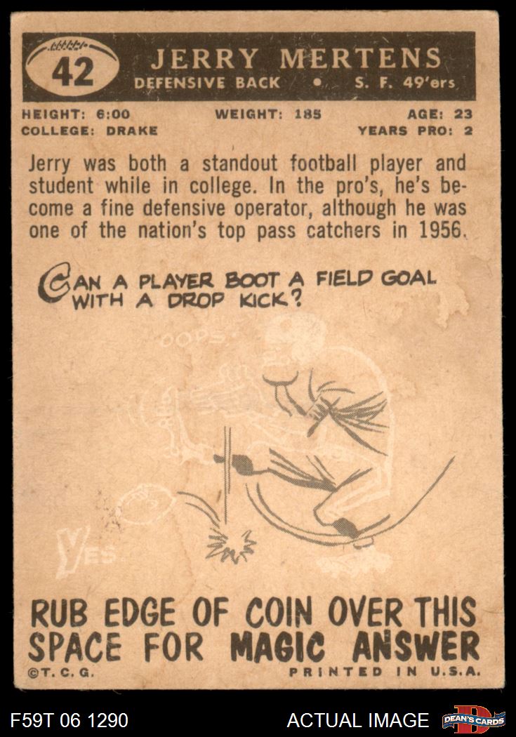 1959 Topps #42 Jerry Mertens 2 - GOOD