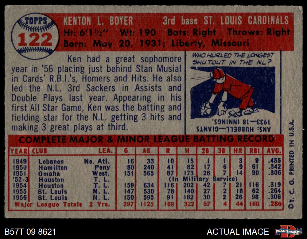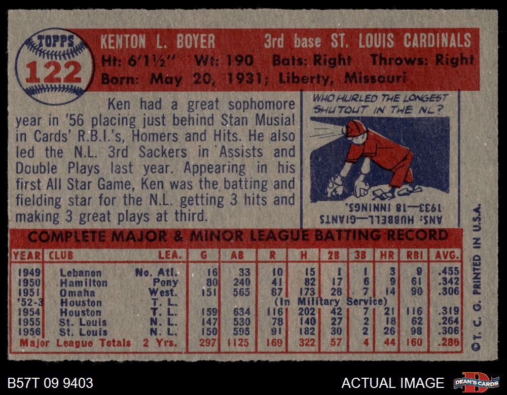 1957 Topps #122 Ken Boyer 4 - VG/EX