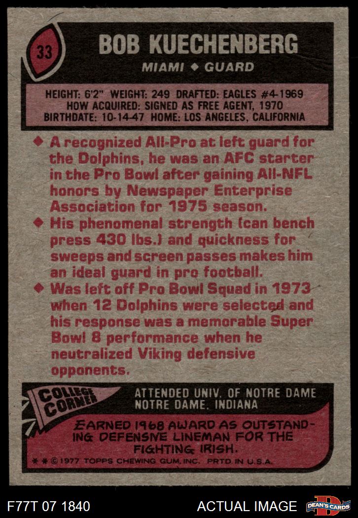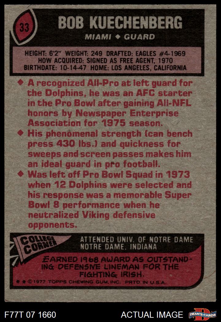 1977 Topps #33 Bob Kuechenberg 5 - EX
