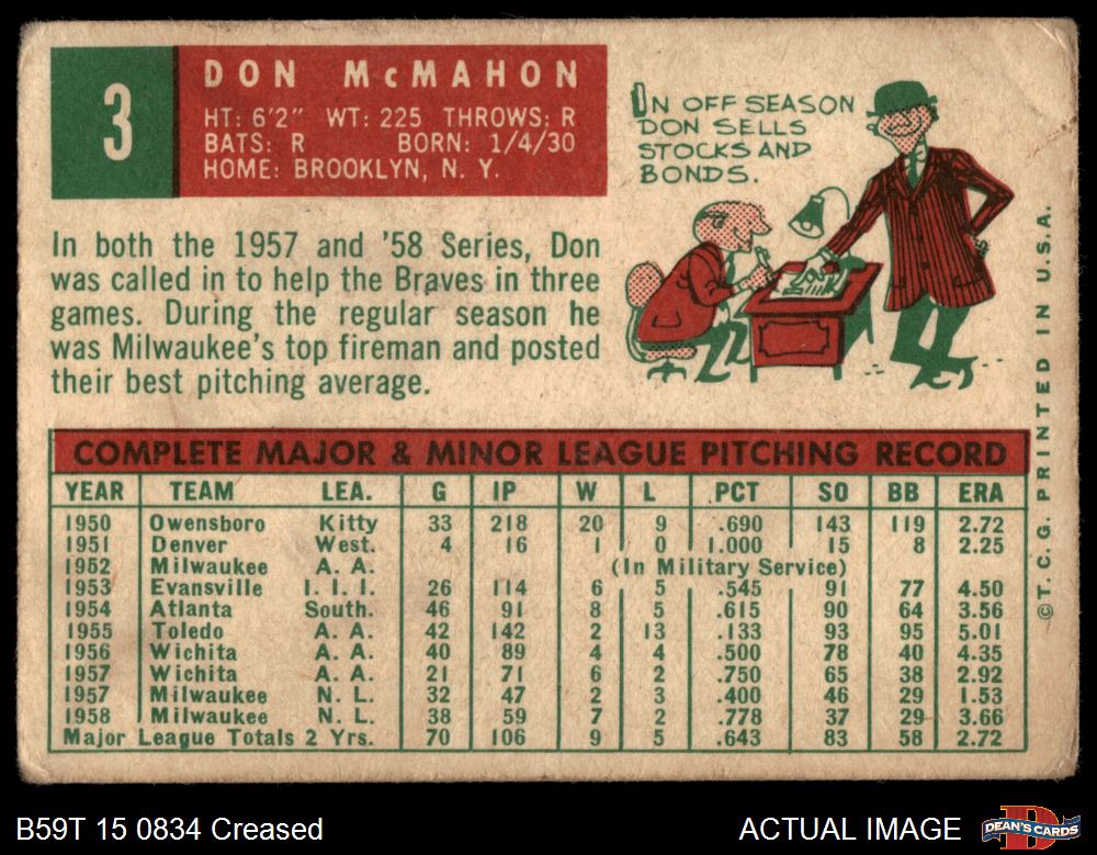 1959 Topps #3 Don McMahon 1 - POOR