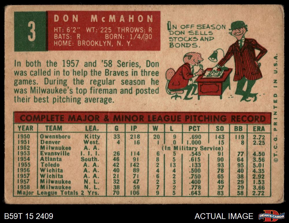 1959 Topps #3 Don McMahon