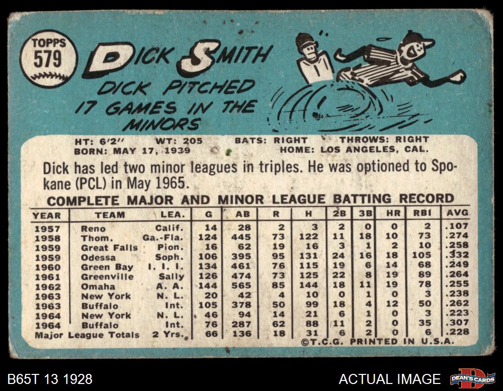 1965 Topps #579 Dick Smith 1 - POOR