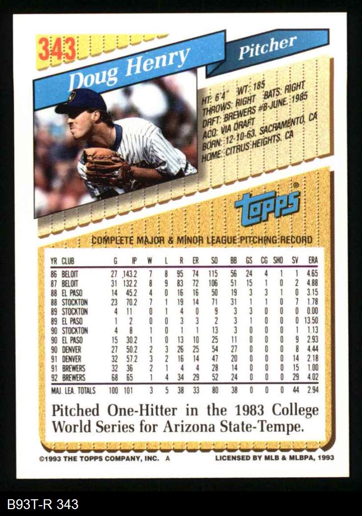1993 Topps Baseball Cards (3,975 available)1993 Topps Brewers (170 available)
