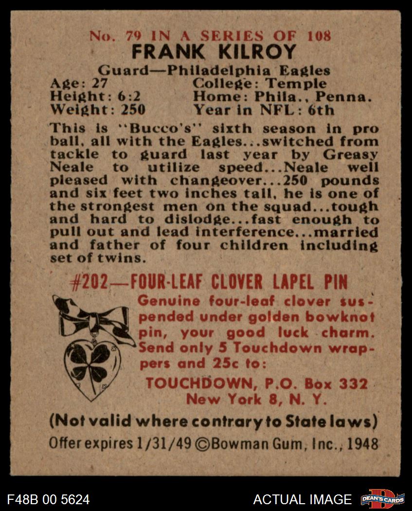 1948 Bowman #79 Bucko Kilroy 6 - EX/MT
