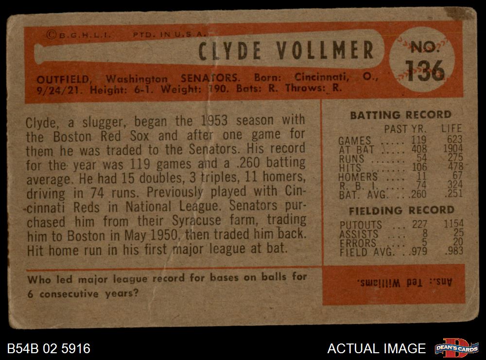 1954 Bowman #136 Clyde Vollmer 1.5 - FAIR