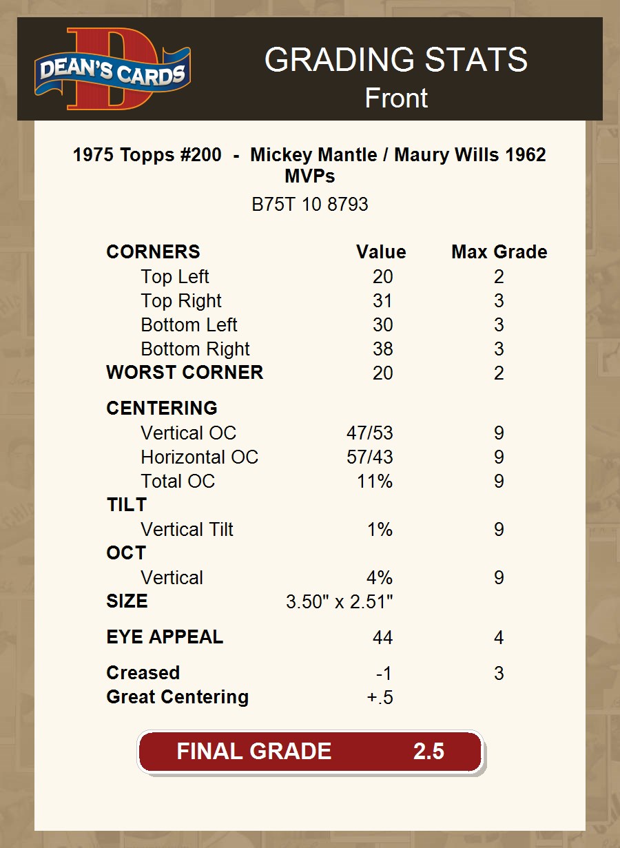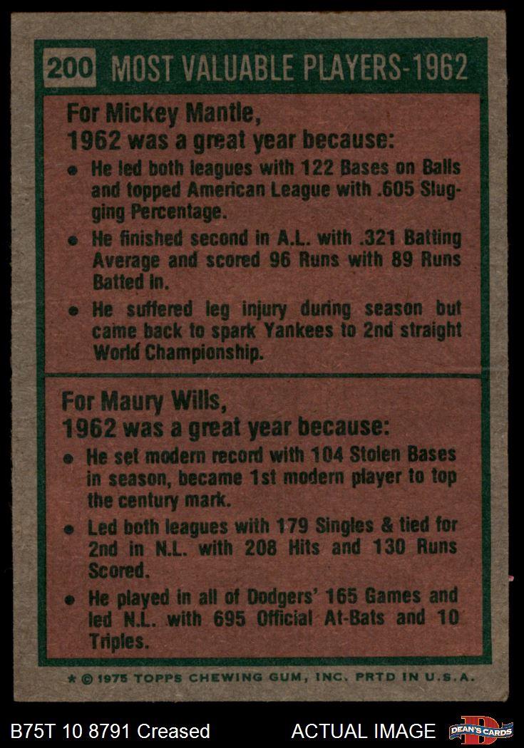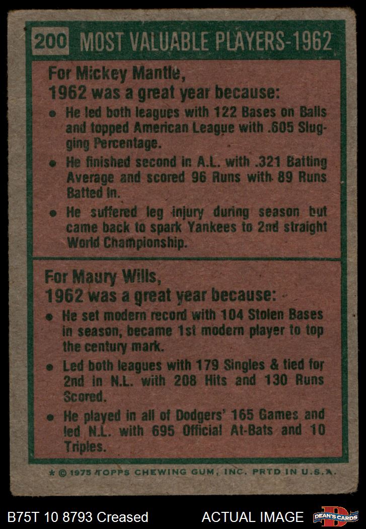 1975 Topps #200 - Mickey Mantle / Maury Wills 1962 MVPs 2.5 - GD+