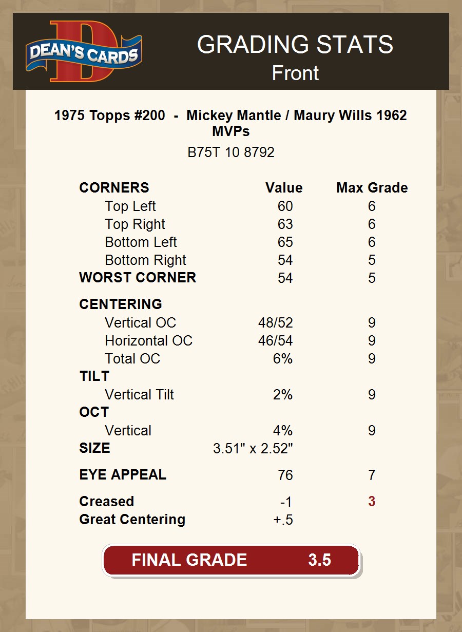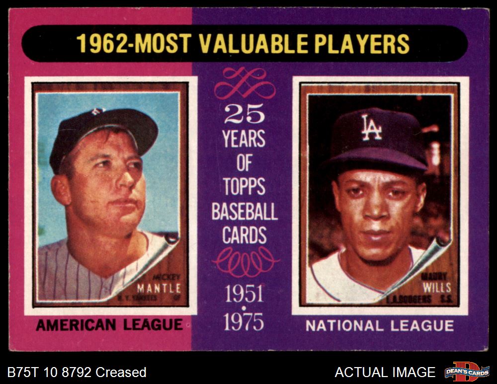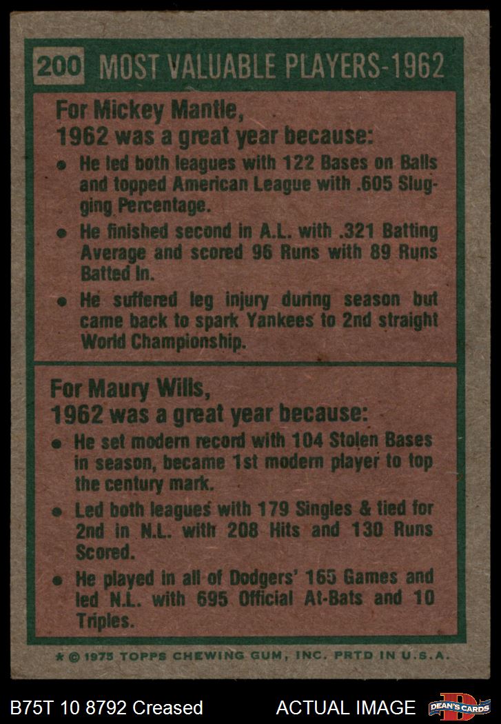 1975 Topps #200 - Mickey Mantle / Maury Wills 1962 MVPs 3.5 - VG+