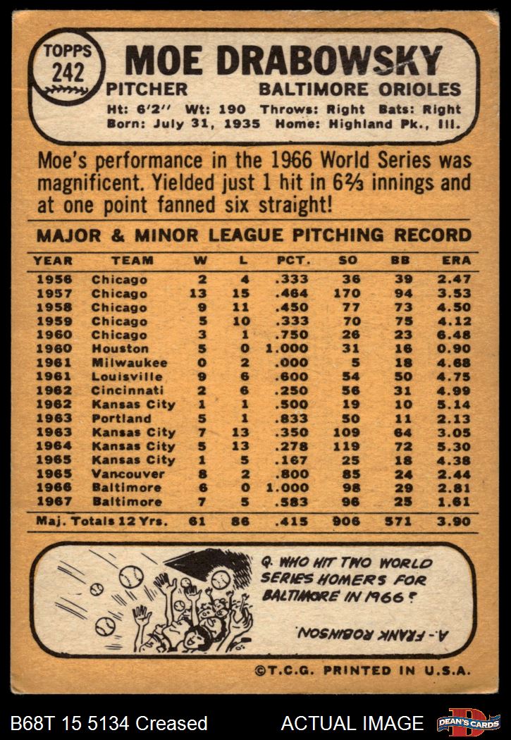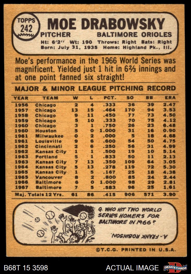 1968 Topps #242 Moe Drabowsky