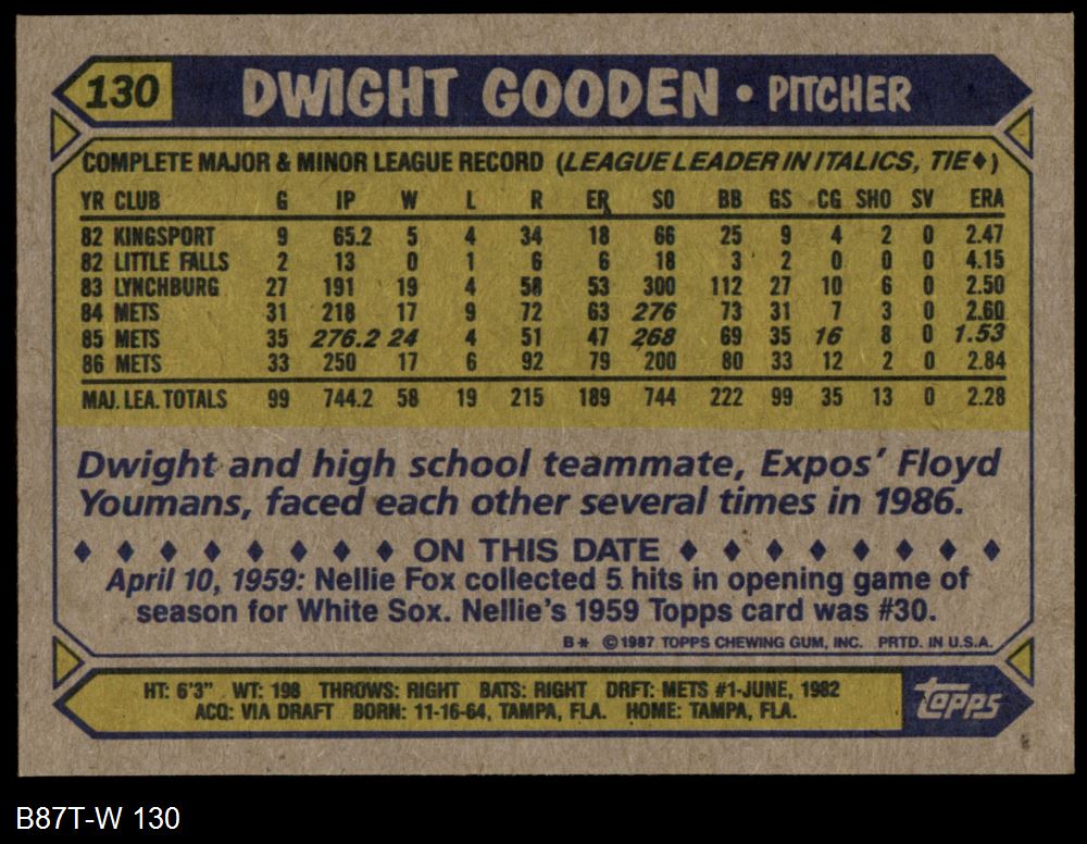 1987 Topps #130 Dwight Gooden