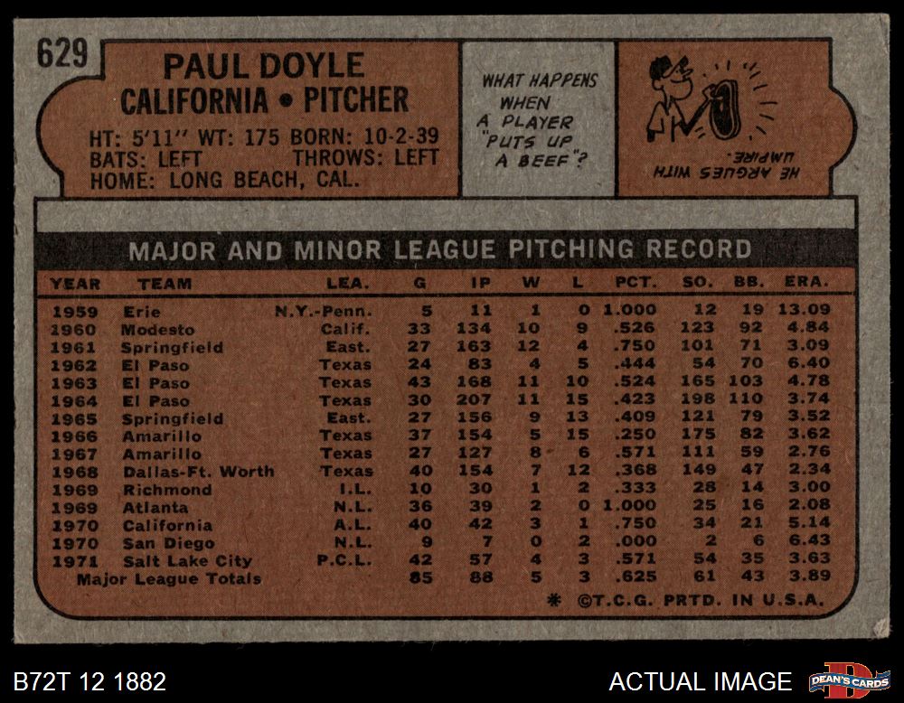 1972 Topps #629 Paul Doyle 4.5 - VG/EX+