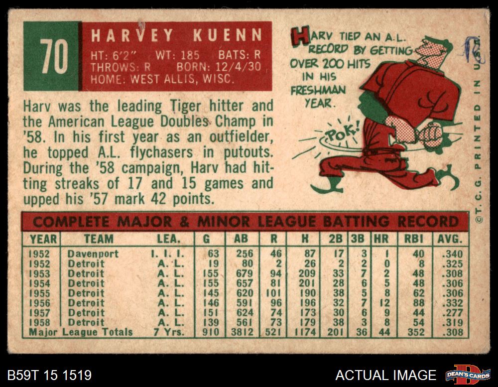 1959 Topps #70 Harvey Kuenn 3.5 - VG+